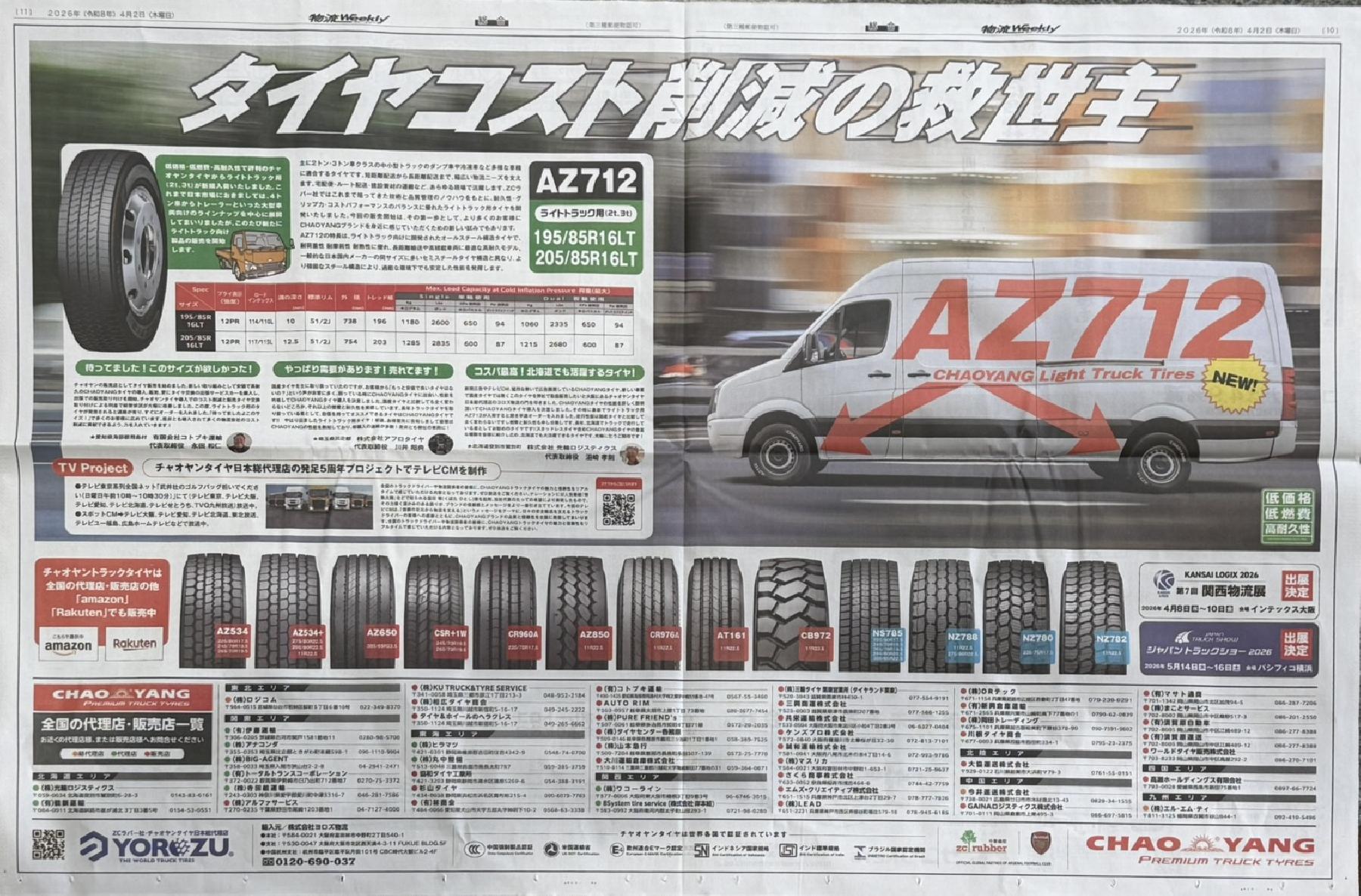 - チャオヤンタイヤ 物流ウィークリー 2026年3月26日号に掲載されました。