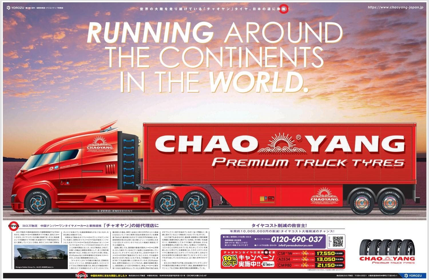 TOPコスト削減 CHAOYANG TIREZC RUBBER(中策ゴム)とは TRUCK TIRESトラックタイヤ一覧 AGENCY & SHOP代理店・販売店一覧 PURCHASEご購入・御見積り NEWS & MEDIA新着・掲載メディア 物流ウィークリー令和3年5月17日号に広告掲載しました。 2021.05.27 一覧へ戻る