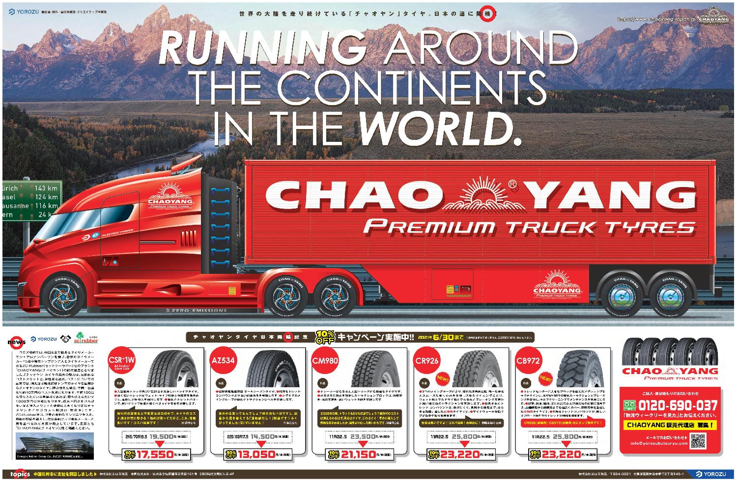TOPコスト削減 CHAOYANG TIREZC RUBBER(中策ゴム)とは TRUCK TIRESトラックタイヤ一覧 AGENCY & SHOP代理店・販売店一覧 PURCHASEご購入・御見積り NEWS & MEDIA新着・掲載メディア 物流ウィークリー令和3年6月14日号に広告掲載しました。 2021.06.16 画像はこちら! 一覧へ戻る