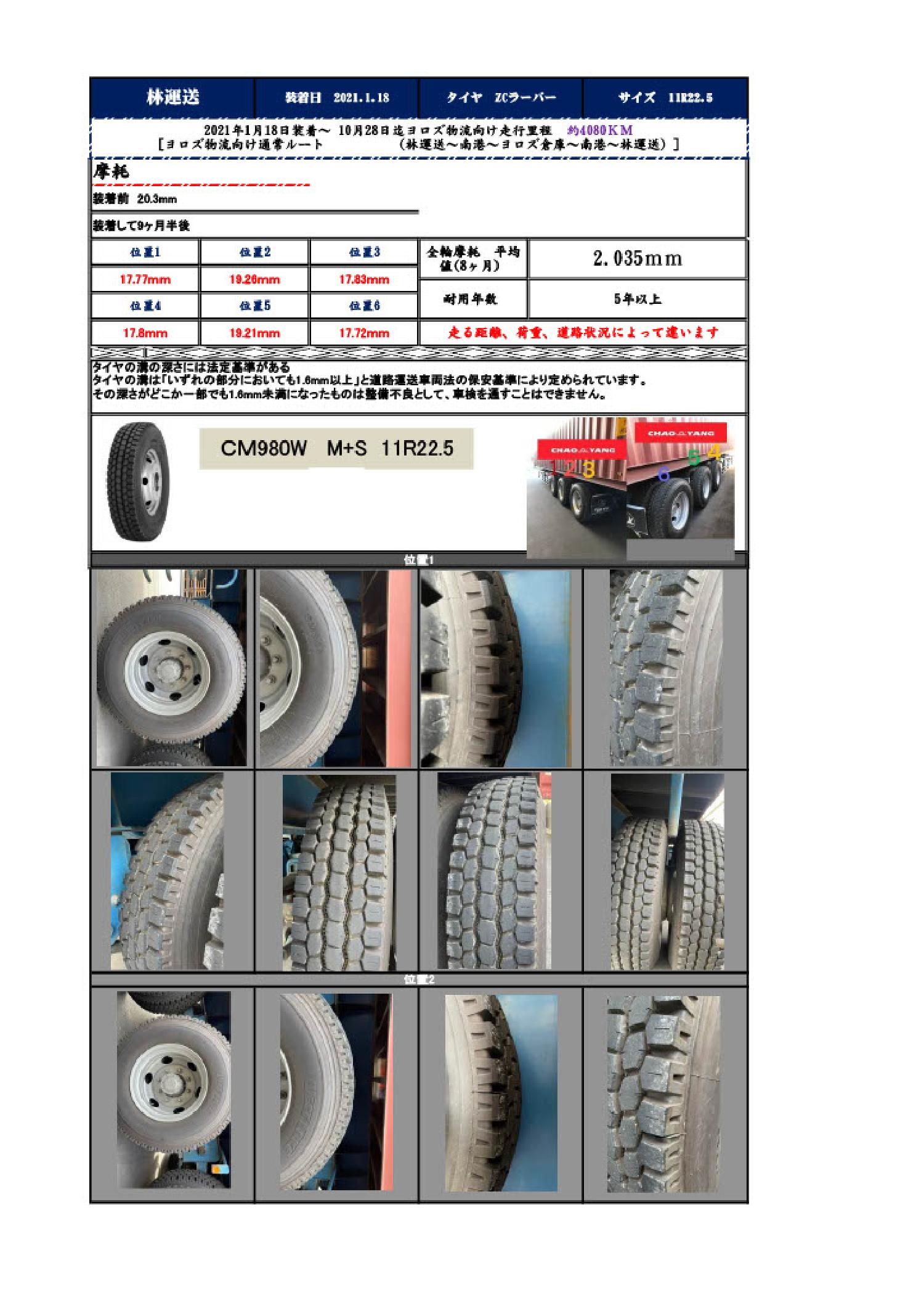 TOPコスト削減 CHAOYANG TIREZC RUBBER(中策ゴム)とは TRUCK TIRESトラックタイヤ一覧 AGENCY & SHOP代理店・販売店一覧 PURCHASEご購入・御見積り NEWS & MEDIA新着・掲載メディア 必見!チャオヤンタイヤ使用レポート!!その9 (11R22.5) 2021.10.29 一覧へ戻る