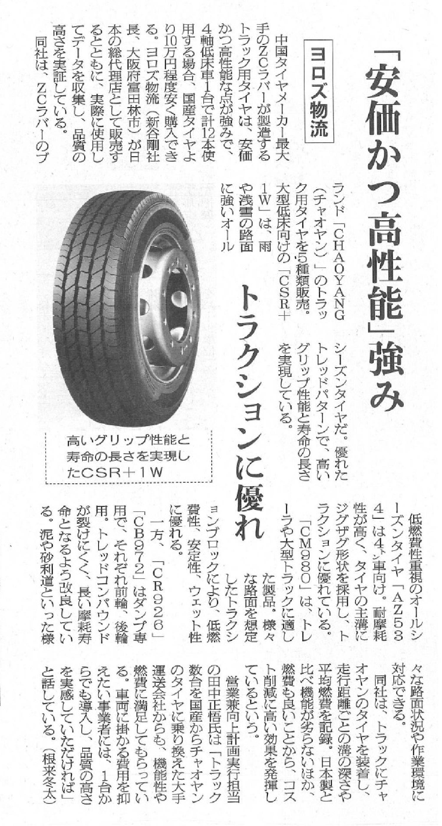 TOPコスト削減 CHAOYANG TIREZC RUBBER(中策ゴム)とは TRUCK TIRESトラックタイヤ一覧 AGENCY & SHOP代理店・販売店一覧 PURCHASEご購入・御見積り NEWS & MEDIA新着・掲載メディア 物流ニッポンに掲載されました! 物流ソリューション特集! 2021.11.02 一覧へ戻る