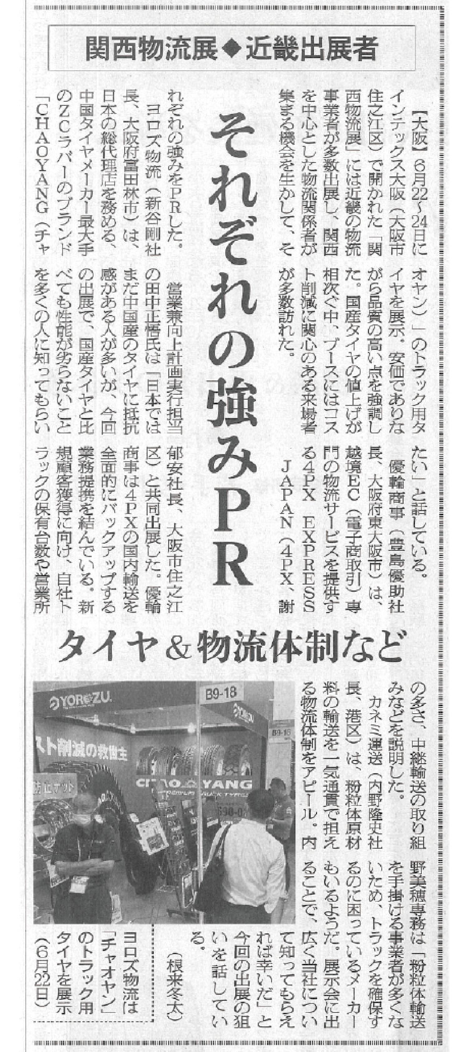 TOPコスト削減 CHAOYANG TIREZC RUBBER(中策ゴム)とは TRUCK TIRESトラックタイヤ一覧 AGENCY & SHOP代理店・販売店一覧 PURCHASEご購入・御見積り NEWS & MEDIA新着・掲載メディア 物流ウィークリー4月19日号に取り上げられました 2021.04.19 一覧へ戻る