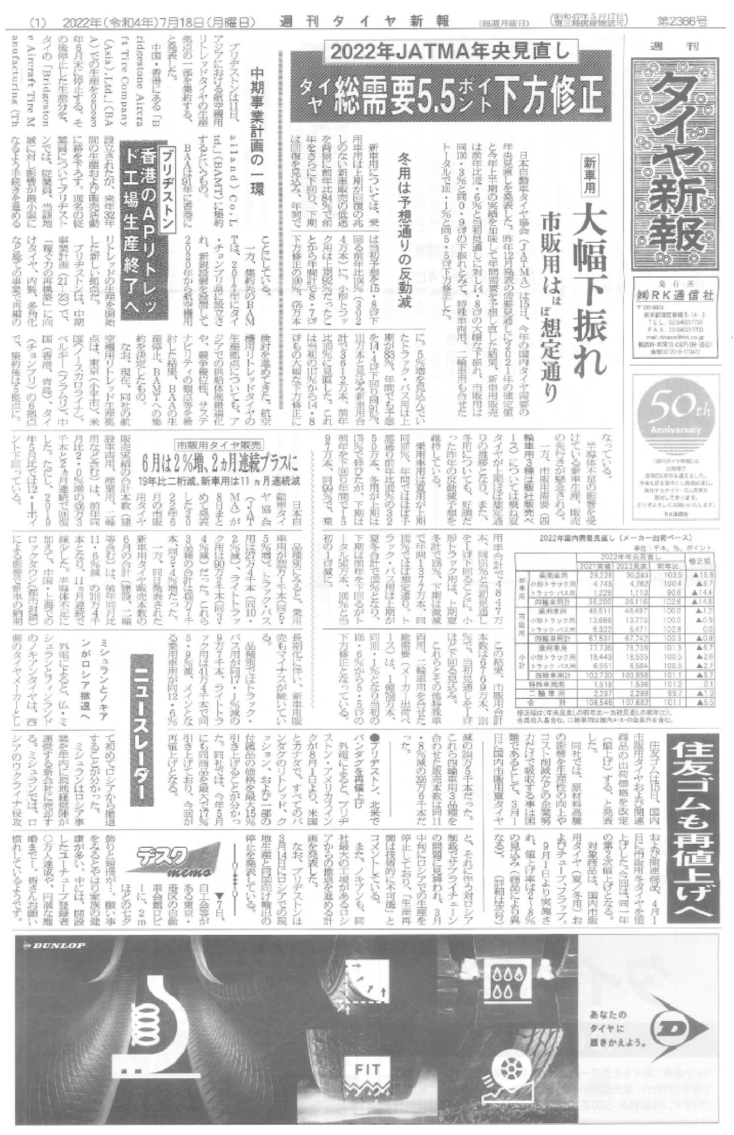 TOPコスト削減 CHAOYANG TIREZC RUBBER(中策ゴム)とは TRUCK TIRESトラックタイヤ一覧 AGENCY & SHOP代理店・販売店一覧 PURCHASEご購入・御見積り NEWS & MEDIA新着・掲載メディア タイヤ新報2022年7月18日号「住友ゴムも再値上げへ」 2022.07.18 一覧へ戻る
